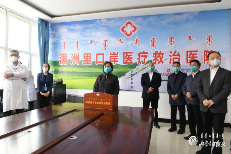5月3日,自治區(qū)黨委副書(shū)記、自治區(qū)主席布小林在滿洲里市集中收治新冠肺炎確診病例定點(diǎn)醫(yī)療機(jī)構(gòu)-滿洲里口岸醫(yī)療救治醫(yī)院與隔離病區(qū)的醫(yī)護(hù)人員和患者視頻連線。