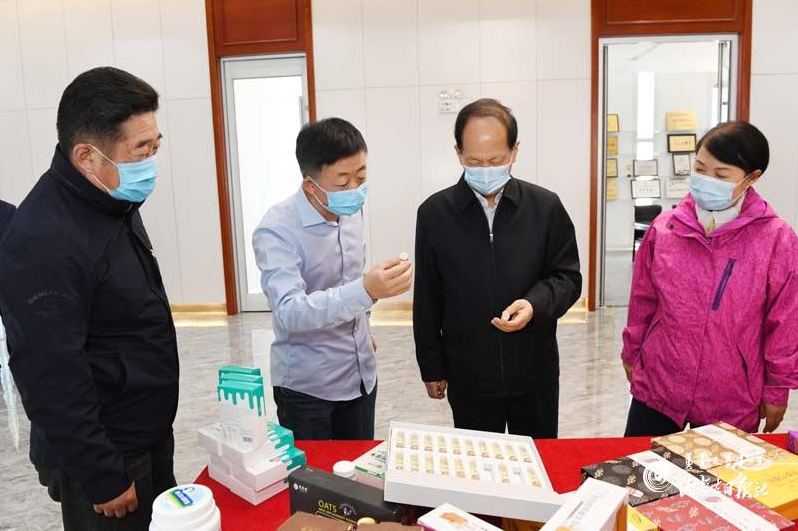 農(nóng)業(yè)產(chǎn)業(yè)發(fā)展離不開(kāi)龍頭企業(yè)的帶動(dòng)。石泰峰先后來(lái)到蒙禾源菌業(yè)公司、燕谷坊生態(tài)農(nóng)業(yè)公司和薯元康生物科技公司,走進(jìn)種植大棚、產(chǎn)品展廳,詳細(xì)了解企業(yè)生產(chǎn)經(jīng)營(yíng)、產(chǎn)品研發(fā)銷售等情況。他指出,鄉(xiāng)村發(fā)展關(guān)鍵看產(chǎn)業(yè),要立足本地優(yōu)勢(shì),從長(zhǎng)遠(yuǎn)出發(fā)謀劃和推進(jìn)產(chǎn)業(yè)發(fā)展,下更大功夫培育打造龍頭企業(yè),有力帶動(dòng)農(nóng)業(yè)增效、農(nóng)民增收,為鄉(xiāng)村振興奠定堅(jiān)實(shí)基礎(chǔ)。要順應(yīng)人們對(duì)健康綠色食品的消費(fèi)需求,做好特色農(nóng)產(chǎn)品精深加工的文章,積極開(kāi)發(fā)多樣化產(chǎn)品,加快推動(dòng)產(chǎn)品進(jìn)商場(chǎng)、進(jìn)超市、出區(qū)外,努力開(kāi)拓更大市場(chǎng),提升產(chǎn)業(yè)發(fā)展質(zhì)量和效益。要高度重視壯大村集體經(jīng)濟(jì),增強(qiáng)基層黨組織服務(wù)群眾的能力。