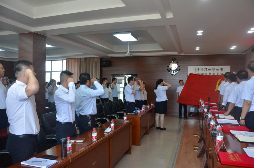 大會在雄壯的國歌聲中拉開帷幕,由集團公司機關(guān)黨支部書記喬娜同志領(lǐng)誓,17名新發(fā)展黨員集體宣誓,全體黨員重溫了入黨誓詞。