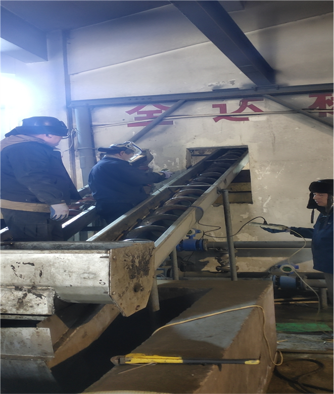 1月5日上午,因設備超負荷運行,污泥處理系統(tǒng)斜螺旋再次發(fā)生斷裂,無法正常使用,為保證生產正常運行,機修段全體人員再次頂著嚴寒,全力搶修,更換新的污泥處理系統(tǒng)斜螺旋,努力保證污泥處理系統(tǒng)安全穩(wěn)定運行。