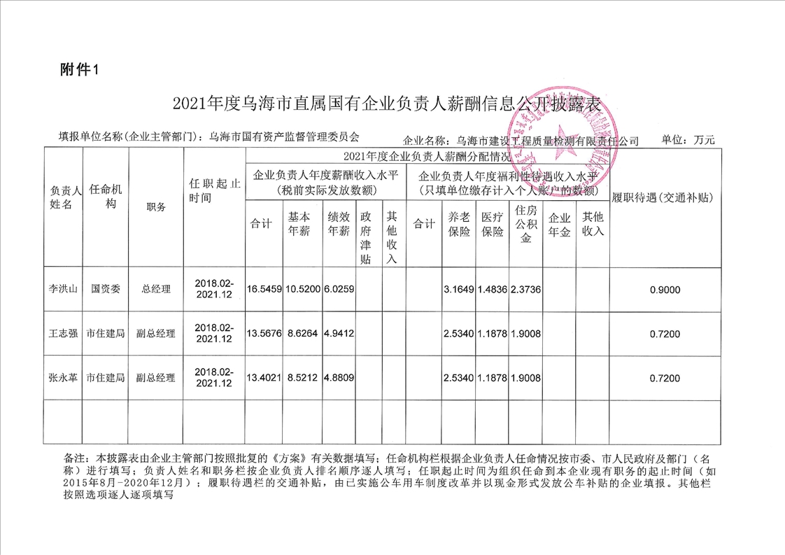 烏海市建設(shè)工程質(zhì)量檢測(cè)有限責(zé)任公司2021年度企業(yè)負(fù)責(zé)人薪酬信息公開披露表