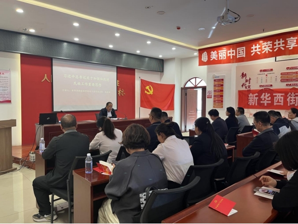 活動(dòng)在莊嚴(yán)的國歌聲中拉開序幕,完成規(guī)定動(dòng)作后,參會(huì)同志認(rèn)真學(xué)習(xí)了《內(nèi)蒙古自治區(qū)全方位建設(shè)模范自治區(qū)促進(jìn)條例》、習(xí)近平總書記關(guān)于加強(qiáng)和改進(jìn)民族工作的重要論述、黨的民族理論政策、“五句話”的事實(shí)和道理、《中華人民共和國民族區(qū)域自治法》《內(nèi)蒙古自治區(qū)促進(jìn)民族團(tuán)結(jié)進(jìn)步條例》《中國共產(chǎn)黨內(nèi)蒙古歷史》(第一卷)等內(nèi)容。新華西街道辦事處黨工委常務(wù)主任高武鴻以《習(xí)近平總書記關(guān)于加強(qiáng)和改進(jìn)民族工作重要思想》為題開展了宣講,部分黨員代表就鑄牢中華民族共同體意識(shí)進(jìn)行了專題研討。