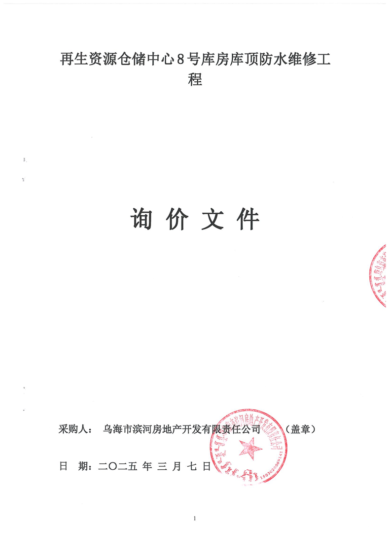 - 2025-04-18烏海市濱河房地產(chǎn)開發(fā)有限責任公司三體系認證詢價文件
