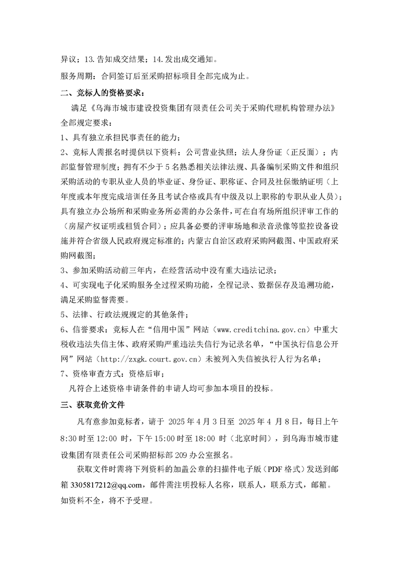 - 2025-04-09烏海市海勃灣區(qū)西南片區(qū)綜合管網(wǎng)改造工程一期、烏海市海勃灣區(qū)東南片區(qū)綜合管網(wǎng)改造工程一期項目施工委托招標(biāo)代理服務(wù)機構(gòu)項目成交人公示