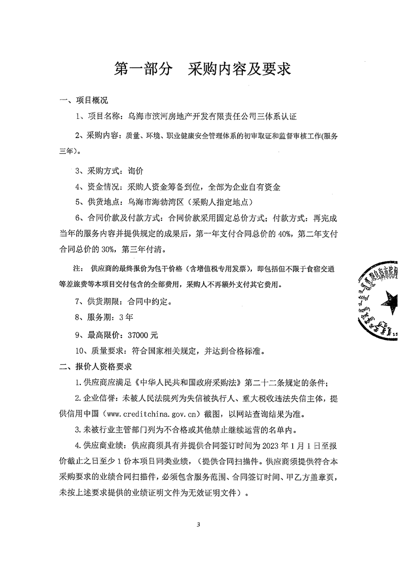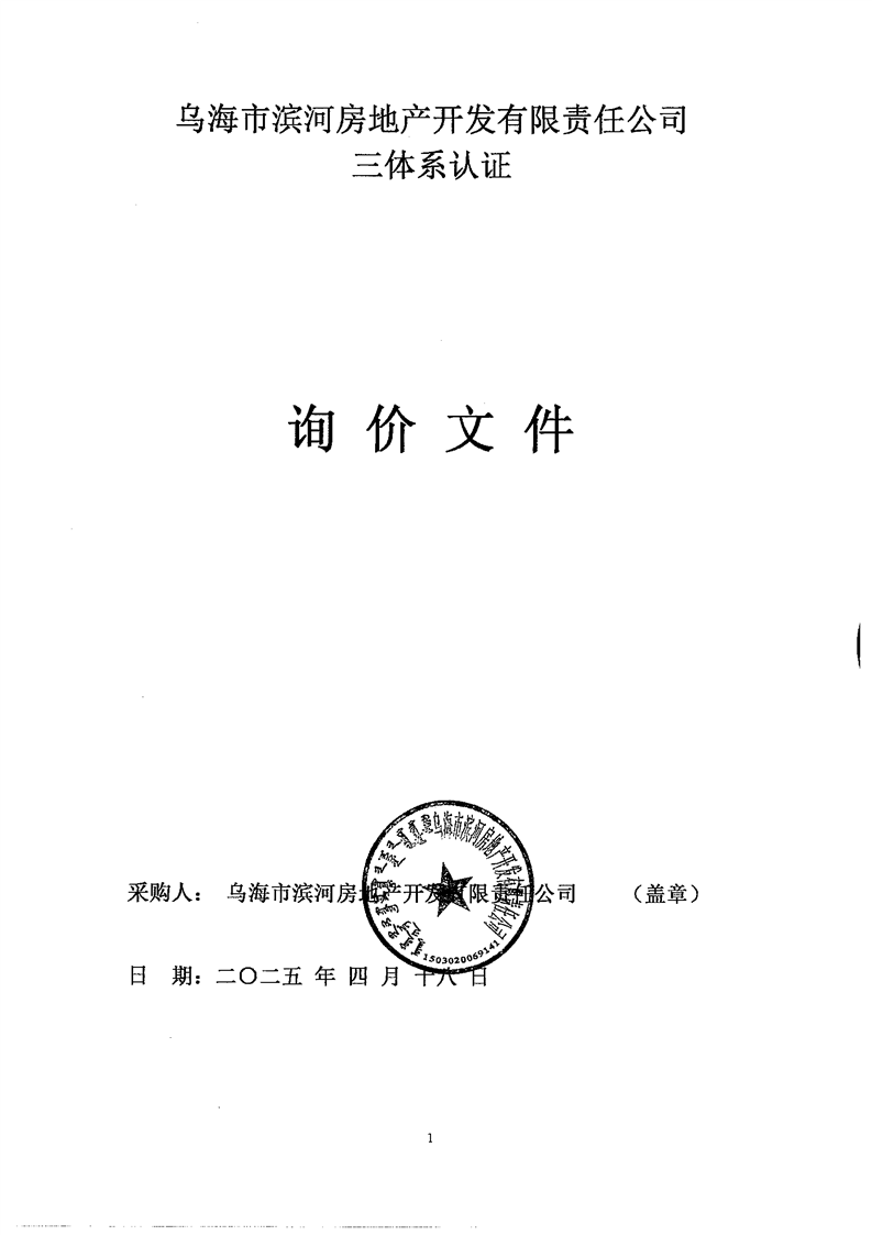 烏海市濱河房地產(chǎn)開(kāi)發(fā)有限責(zé)任公司三體系認(rèn)證詢(xún)價(jià)文件