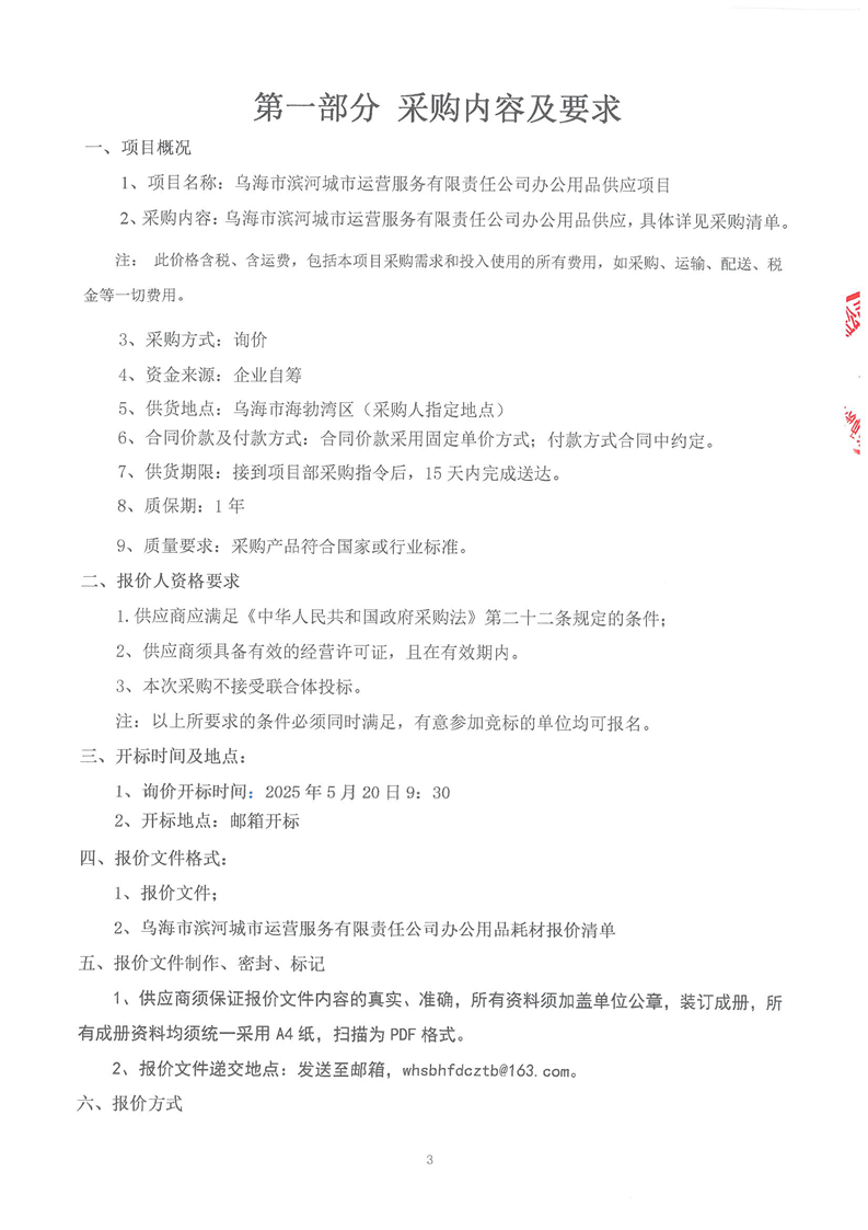 - 2025-05-20烏海市濱河城市運(yùn)營服務(wù)有限責(zé)任公司物業(yè)耗材供應(yīng)商采購詢價文件