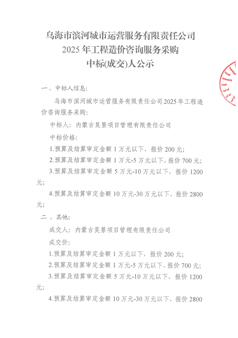 - 2025-05-20烏海市濱河城市運營服務有限責任公司辦公用品耗材中標(成交)人公示