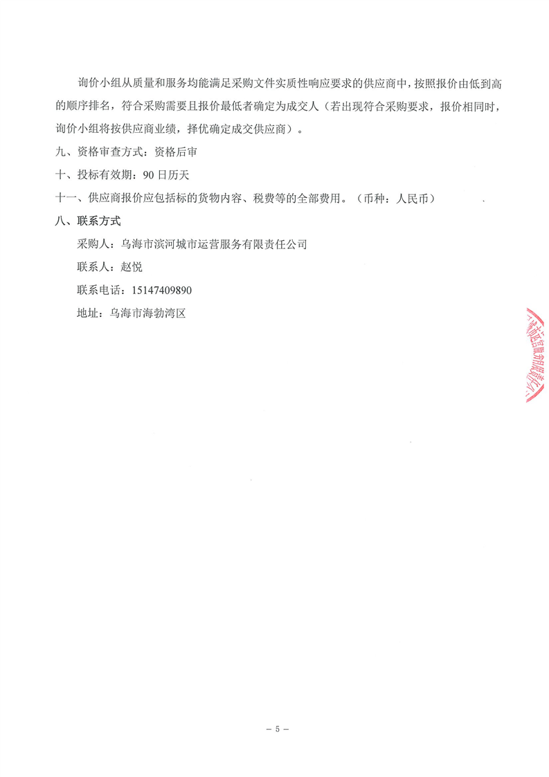 烏海市濱河城市運(yùn)營服務(wù)有限責(zé)任公司電梯維保服務(wù)商采購詢價文件