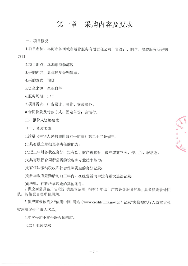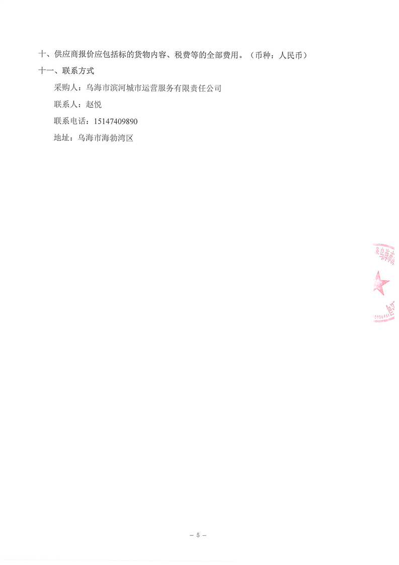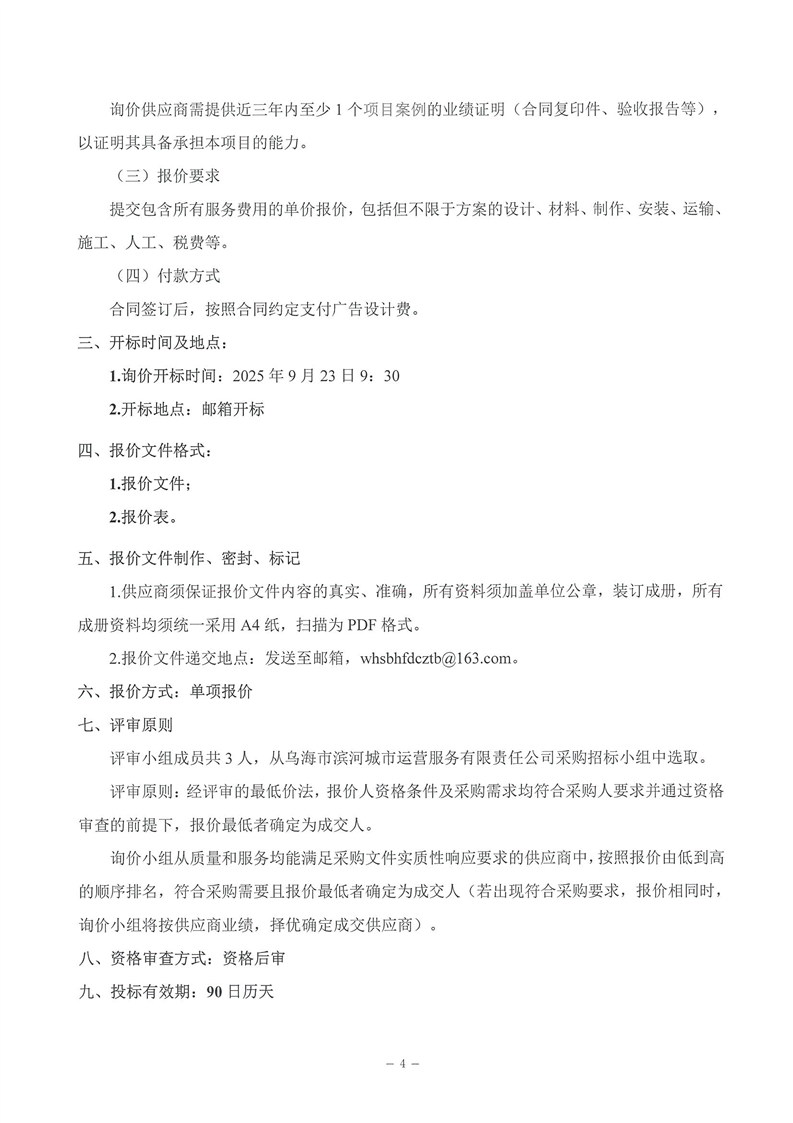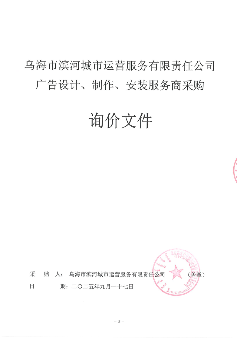 - 2025-07-17烏海市濱河城市運營服務有限責任公司電梯維保服務商采購詢價文件
