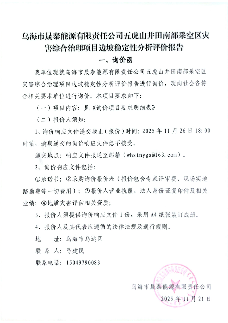 烏海市晟泰能源有限責(zé)任公司五虎山井田南部采空區(qū)災(zāi)害綜合治理項(xiàng)目邊坡穩(wěn)定性分析評(píng)價(jià)報(bào)告