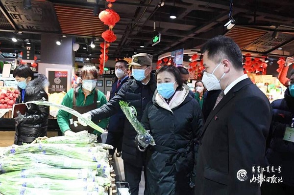 2月3日,自治區(qū)黨委副書記、自治區(qū)主席、自治區(qū)新型冠狀病毒感染肺炎防控工作指揮部總指揮布小林在包頭市王府井超市查看物品供應(yīng)、價格、貨源保障等情況。